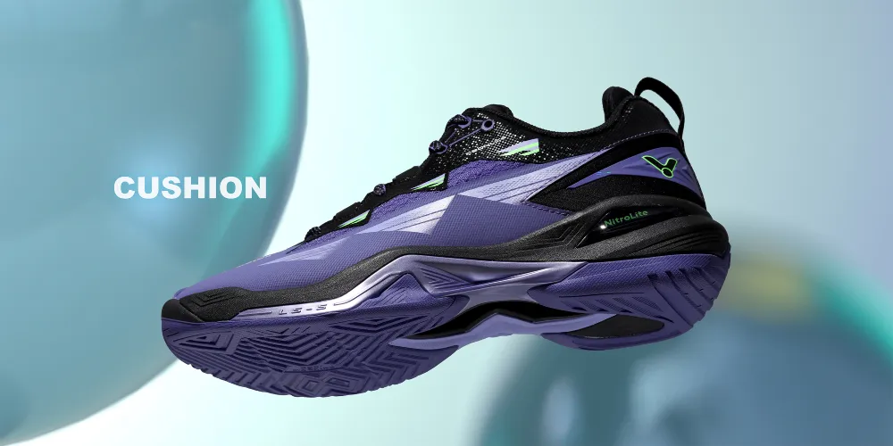 VICTOR launches the all-new CUSHION type badminton shoe, engineered for superior shock absorption and rebound. With a precisely adjusted midsole thickness and a reinforced support structure, it effectively absorbs two to three times the impact of single-foot landings. This innovative design enhances comfort while significantly reducing the risk of injuries on lower limbs such as knees and ankles.