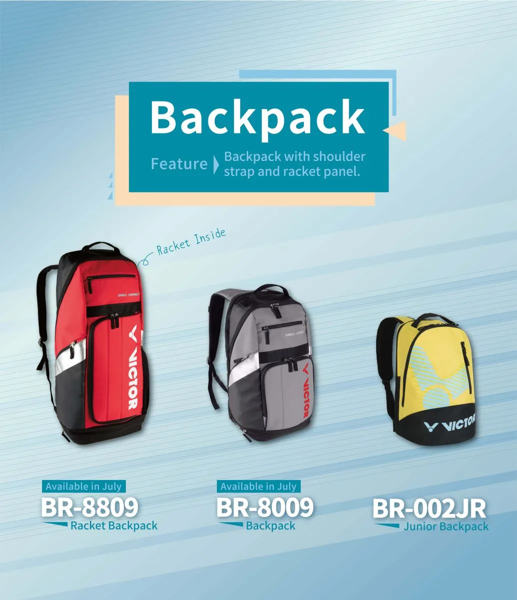 VICTOR badminton bags in common feature purposeful compartments to keep you organized and ready for the courts. The designers tailored each type of bag to incorporate the most thoughtful details that answer to players’ needs. To name one of those, how to offer a high level of protection without putting on too much weight is always a top consideration. Most of the bags also carefully arrange the vented or the water-or-heat resistant zones, as well as separated storages for intimate belongings, smaller items, or dirty and wet stuff.