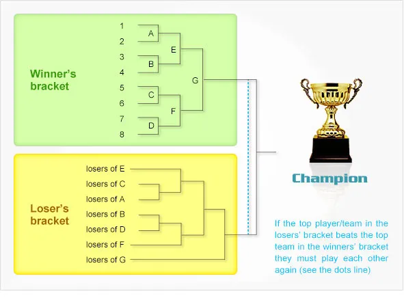 The double elimination system reduces the role played by luck, so is more of a faithful refection of player ability, making it a very fair tournament system.