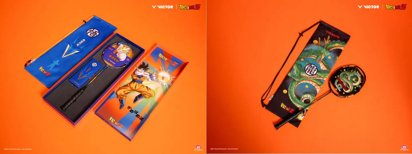 VICTOR x Dragon Ball Z Collection launches racket gift box and rackets with Goku and Shenron elements
