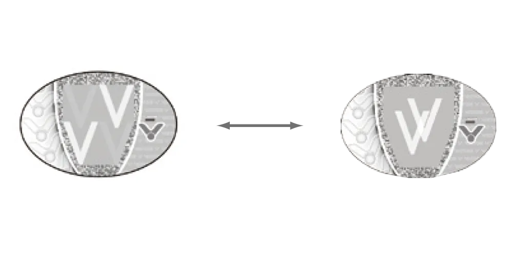 The image “V” will gradually move in 360 degrees as you tilt the label to different angles.