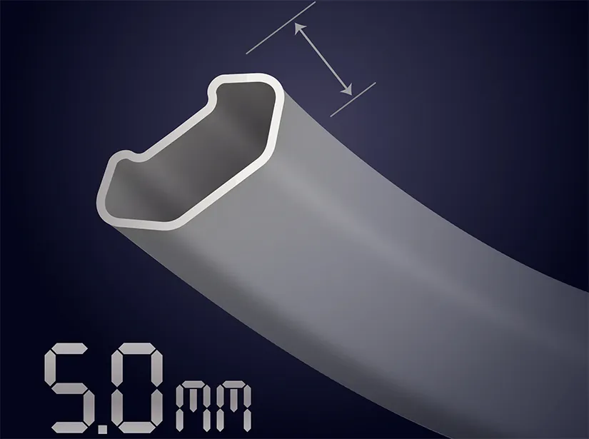 5.0mm racket frame design. With the thinnest part of the frame measuring just 5.0mm, each swing feels like wielding a sharp blade and brings lightning speed.