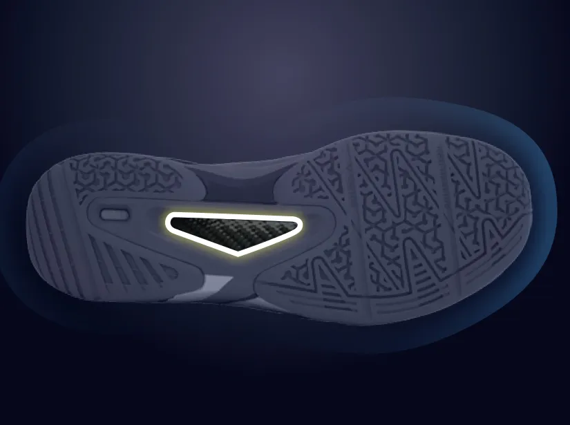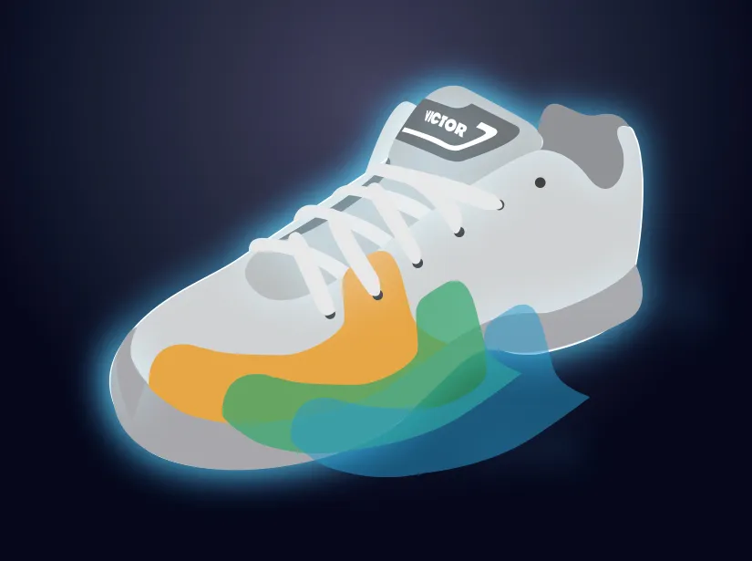 The outside of forefoot is designed using high-strength TPU. This significantly enhances the lateral stability during intense and rapid transfer of direction when playing badminton.