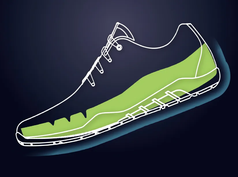 EVA Feather Resilient not only preserves excellent elasticity, but also improves the lightweightness by 20% compared to traditional midsole, helping relieve leg muscle strain and making swift movement easier and faster.