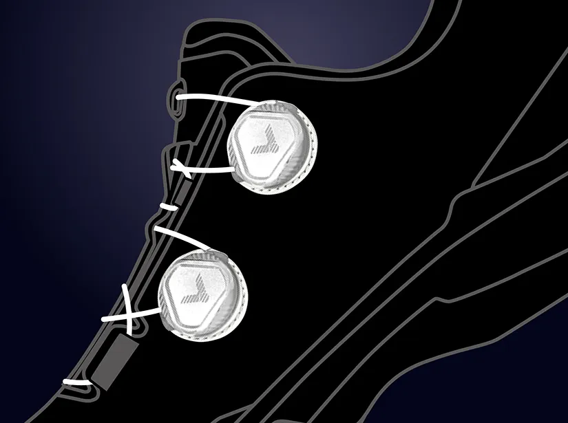 The Quick Lace System features an adjustable integrated lacing dial, enabling rapid customization of performance shoe fit, personalized comfort, as well as robust support and stability.