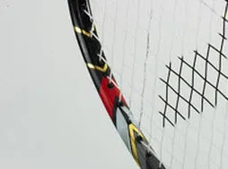 The unique 80-hole stringing pattern is a one-string-per-hole. This creates a perfect square network which allows an even distribution of the string and reduces friction between the horizontal and vertical strings which also reduces re-stringing time.